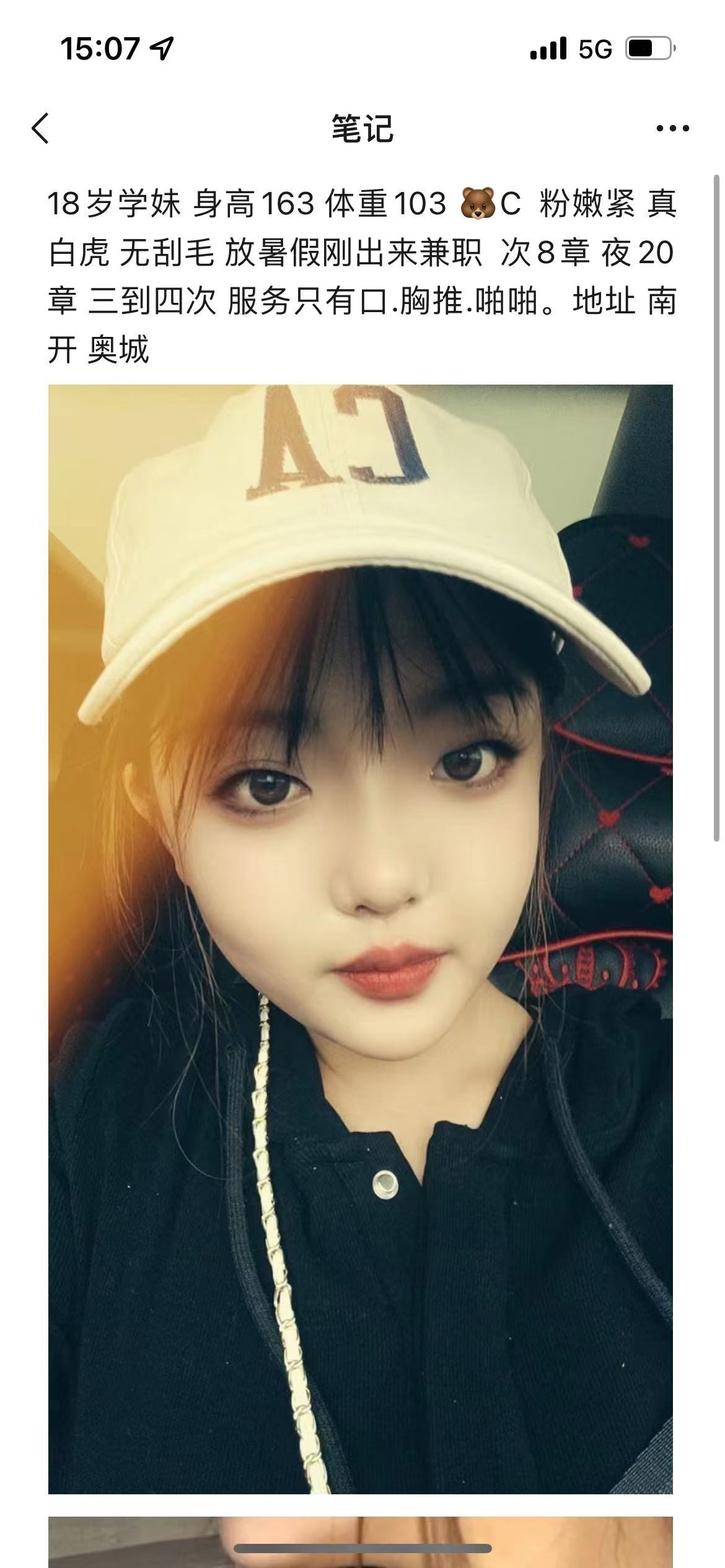 话不多说直入主题,小妹确实年轻,白虎也确实真的,但是人有点黑,长相吧7.8分像。不过身材还可以,胸大,从小米粒摸成小黄豆。就是口大,好在听话,两腿开叉,一通抽插。